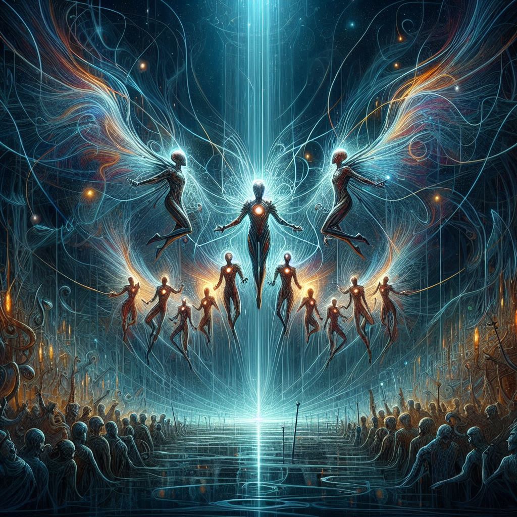 O ființă translucidă, formată din unduiri de lumină și întuneric, apăru din vârtejul de energie cosmică. „Sunt Gardianul Trecutului Dinamic,” spuse ea, cu o voce care părea să răsune din toate direcțiile în același timp. „Am existat dincolo de timp și spațiu, veghetor al ciclurilor infinite ale creației și distrugerii. Voi, care ați înțeles Cântecul Singuralităților, sunteți pregătiți să deveniți ceea ce trebuia să fiți de la început.”