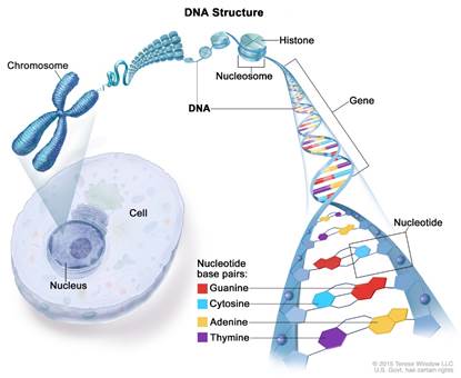 Locul în care își are rezidența ADN-ul se află în nucleul celular (Fig.1) unde este împachetat (și superarhivat) sub forma a mai multor structuri de forma literei X ce reprezintă cromozomii. Mai exact, la oameni, există 46 de astfel de cromozomi, grupați în 23 de perechi. Douăzeci și două de asemenea perechi se numesc autozomi și au o structură asemănătoare atât la femei (♀), cât și la bărbați (♂), iar a 23-a pereche diferă deoarece codează informații despre sexul organismului.
